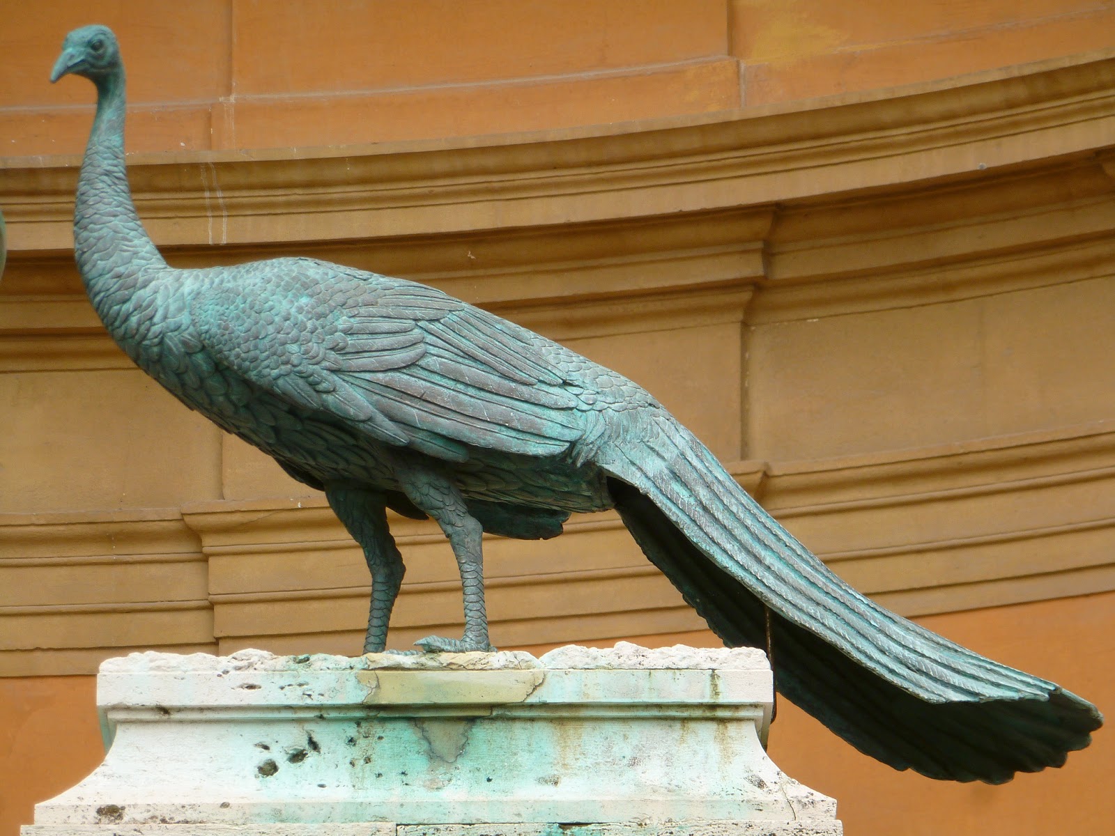 Dans le cortile de la pigna, moi aussi je shoote les paons qui entourent la pomme de pin gigantesque. Ils viennent du mausolée d'Hadrien. Il se trouve que deux jours avant mon départ, j'ai décidé d'emporter pour le lire pendant mon séjour, les mémoires d'Hadrien de Marguerite Yourcenar. Un voyage littéraire dans la Rome Antique, pour la novice que je suis de cette période de l'histoire, m'évade des tempêtes de klaxons de la Rome d'aujourd'hui. Hadrien restera mon guide tout au long de cette semaine, mon fil rouge au milieu de ce musée à ciel ouvert.